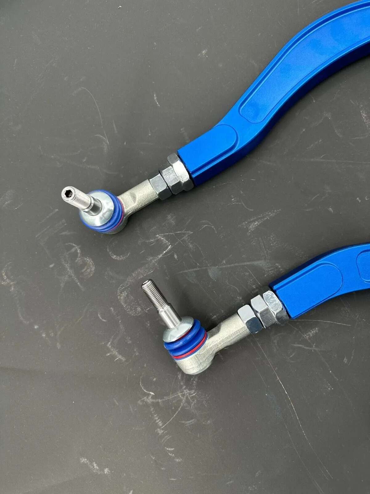 Engineer precise rear alignment with these aluminum adjustable toe control arms, designed for the BMW 5 Series (F10/F11), 6 Series (F12/F13), and 7 Series (F01/F02/F04). Crafted from high-grade aluminum for reduced unsprung weight and durable strength, they provide essential toe angle adjustment to correct geometry after lowering or to fine-tune handling. This precise control ensures optimal tire contact, enhances straight-line stability and cornering response, and promotes even tire wear. A crucial upgrade for maintaining your BMW's renowned driving dynamics after suspension modifications. Professional installation and a final wheel alignment are required to achieve correct settings.