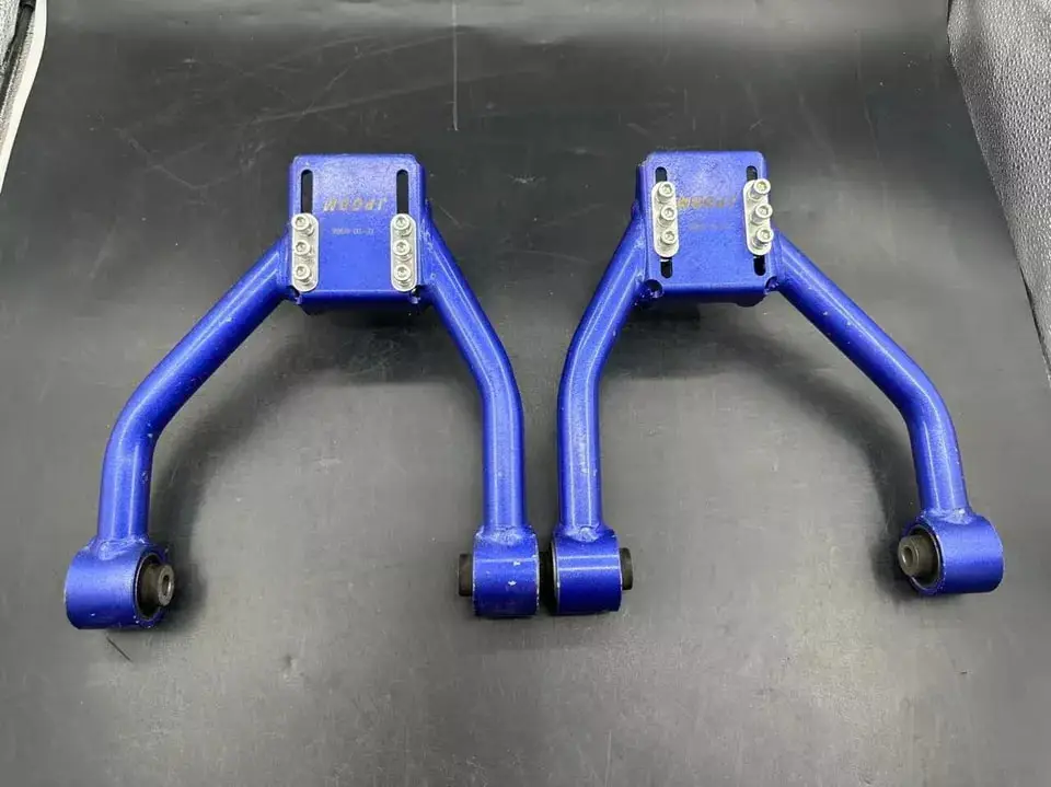 Constructed from high-strength steel with a durable powder-coated finish, each set includes two arms with high-quality spherical bearings for smooth operation and reduced noise. The easy-to-adjust design lets you fine-tune your vehicle's suspension geometry without removing the arms, making alignment adjustments quick and straightforward. Perfect for both street and track applications, these camber arms help eliminate uneven tire wear while improving overall handling dynamics. Installation is straightforward with direct bolt-on fitment using factory mounting points.