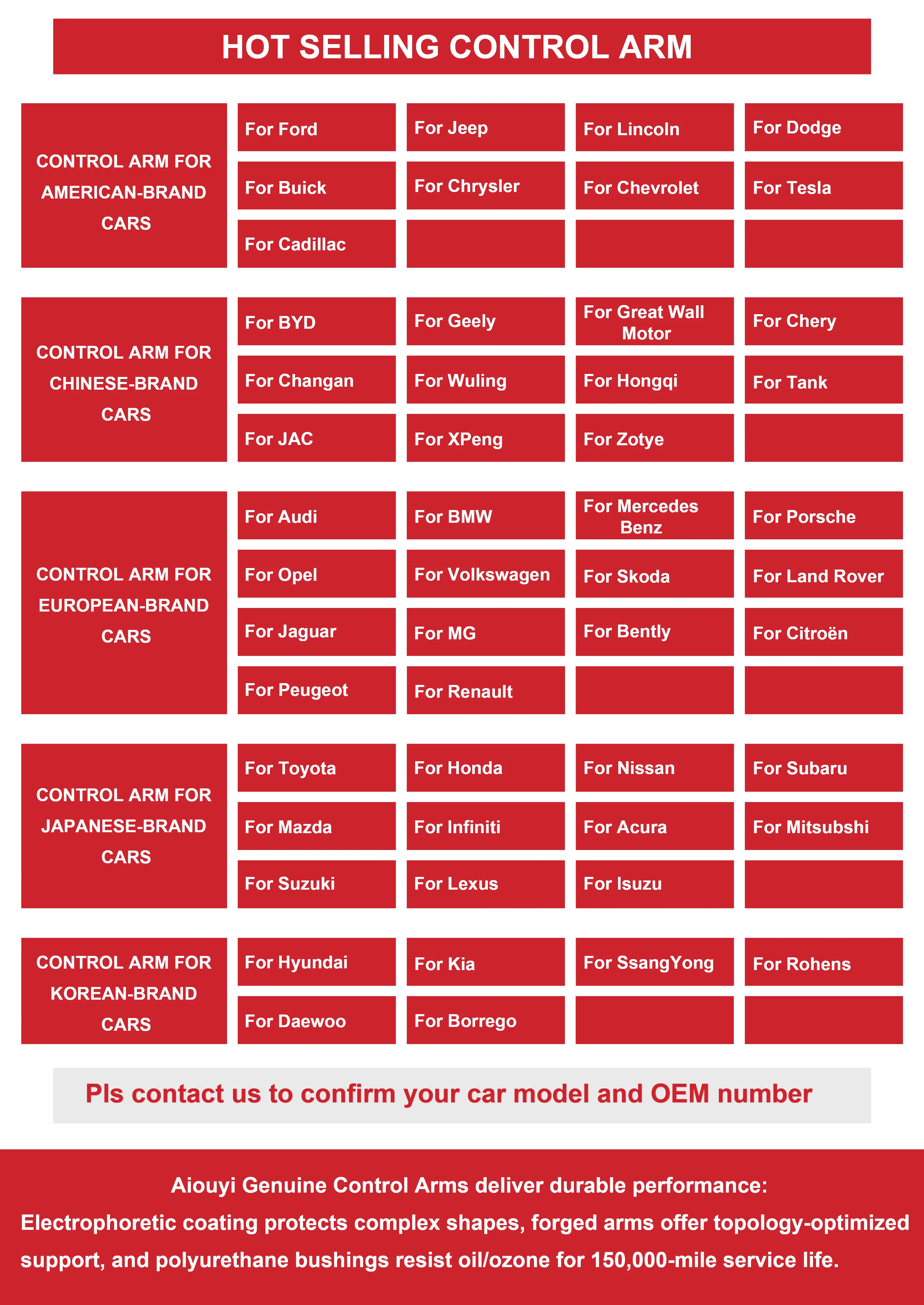 These upper left and right control arms, straight arms and swing arms are precision-manufactured to fit Audi A4, A6, S4, and Volkswagen Passat 3B2, 3B3, 3B6 models perfectly. Crafted with high-strength steel, they feature exceptional rigidity and durability, effectively bearing chassis pressure and reducing deformation. Designed as direct OEM replacements, they ensure easy installation, stabilize vehicle steering, improve driving smoothness, and prevent abnormal noise, providing reliable support for your vehicle’s suspension system.