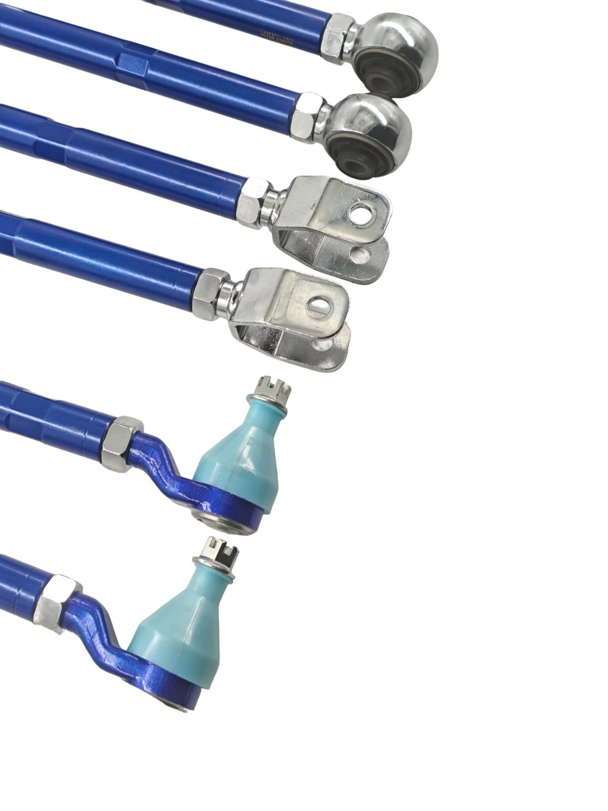 - Stainless spherical pillow ball bushing on the adjusting end and rubber